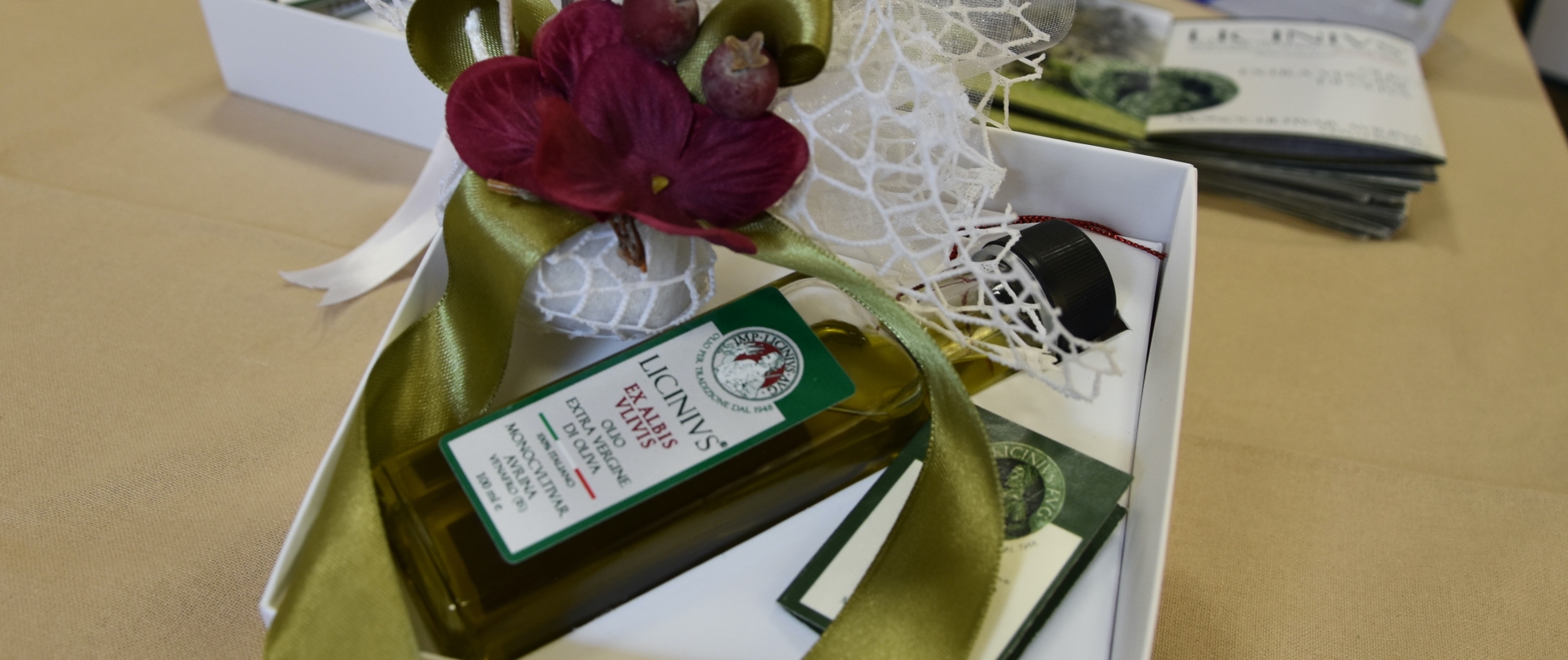 Olio EVO Licinivs draws inspiration from these trends to offer its precious extra virgin olive oil in elegant box packages containing a small favor bottle.